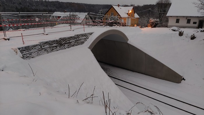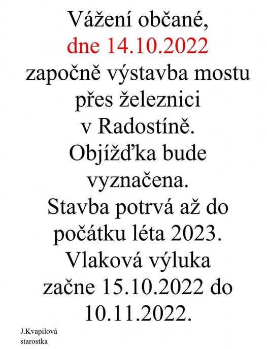 Dne 15.10.2022 byly provedeny první práce-odstranění kovové konstrukce starého mostu a následný odvoz na nádraží Sychrov. S tímto byla spojena výluka vlaků od 15.10. do 10.11.2022. Od 16.06.2023 získala obec souhlas s předběžným užíváním mostu před řádnou kolaudací. Povolení vydal Městský úřad Turnov. 17.10.2023 proběhla jeho kolaudace. Celková cena mostu byla 24 424 237,53 Kč, toho dotace 19 626 008,30 Kč. Celkem naše obec zaplatila za nový most částku 4 798 229,23 Kč.